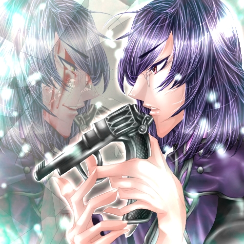これ、本当はもう一人のアーデさんはいらっしゃらなかったんです。この構図はリジェネ+ティエリアをやった時にとっとくつもりだったので。でも気がついたらもう一人のアーデさんを描いていました。詳細はまたUPしたら書く予定ですが、「命を奪う自分は鏡中の狂気と成り果てるが、頑なな意思を燃やす瞳光は境界線を破壊する」という内容を込めてみました。彼らは「恒久平和のため」という大義名分を掲げながら結局は人の命を奪っているわけですから―――綺麗事では済まされないんだよ。ということを表し、でも鏡が割れているのは「がむしゃらを貫け」というニールの遺言が彼の核を揺さぶっているから。